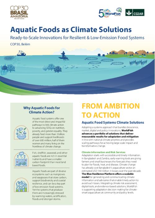 Michelle Tigchelaar, David Wardell. (12/11/2025). Aquatic foods as climate solutions: Ready to scale innovations for resilient & low-emission food systems. Bayan Lepas, Malaysia: WorldFish (WorldFish).