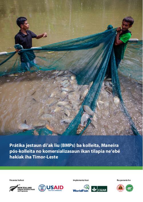 Pant J, Gomes S, Teoh SJ, Pereira M no Bhujel RC. 2026. Prátika jestaun di’ak liu (BMPs) ba kolleita, Maneira pós-kolleita no komersializasaun ikan Nila ne’ebé hakiak iha Timor-Leste. Penang, Malaysia: WorldFish. Manuál: 2026-02.
