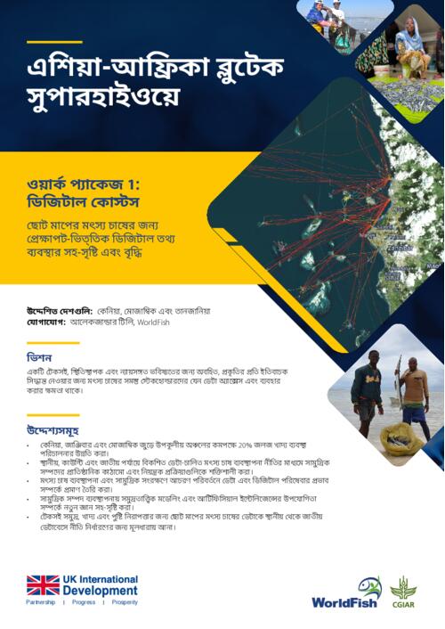 WorldFish. 2025. এশি�য়াা-আফ্রিকাা ব্লুুটেক সুুপাারহাাইওয়ে: প্রকৃৃতি, মাানুুষ এবংং জলবাায়ুুর জন্যয ত্রিমুুখীী সাাফল্যয আনতে দক্ষিণ-দক্ষিণ সহযোোগি�তাার সদ্ব্যযবহাার। পেনাংং, মাালয়েশি�য়াা: WorldFish. ওয়াার্ককপ্যাাকেজ 1-এর সাারসংংক্ষেপ।.