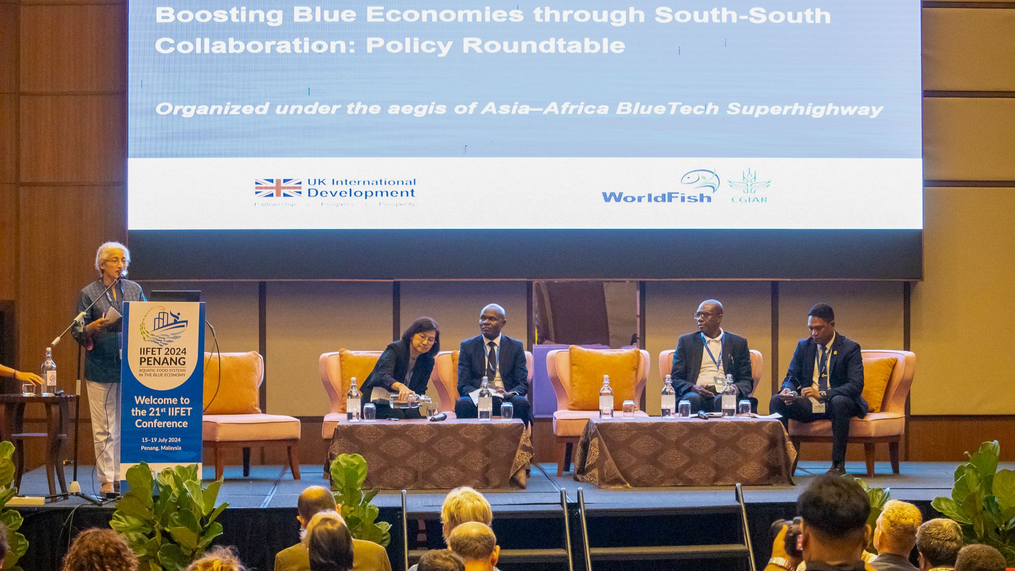The morning sessions culminated in a policy roundtable on boosting blue economies through South-South collaboration under the auspices of WorldFish’s Asia-Africa Bluetech Superhighway project, featuring discussions on policy frameworks and collaborative efforts.