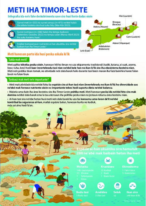 Publikasaun ida-ne’e tenke sita hanesan: Burgos A, Bonis-Profumo G, Ximenes I do R, Simões NF, Longoni B, Schut T, Boylan S, Bogard J and Mills DJ, 2025. Meti iha Timor-Leste. Penang, Malaysia: WorldFish. Rezumu Programa: 2025-90.